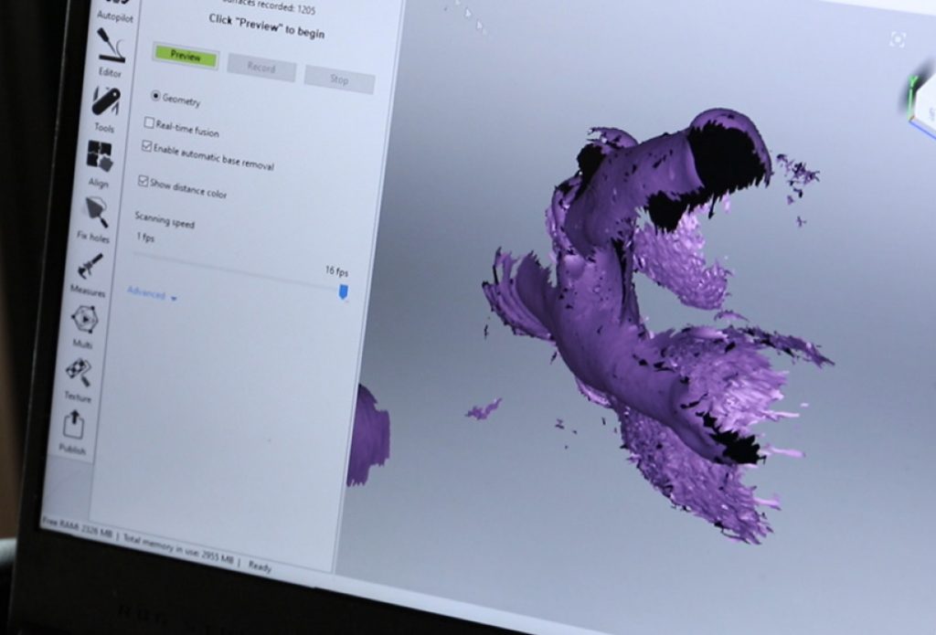 Începem prin efectuarea unei scanări 3D detaliate a membrului amputat al pacientului. Această tehnică avansată ne oferă date precise despre forma și dimensiunile necesare pentru a crea o proteză perfect adaptată.